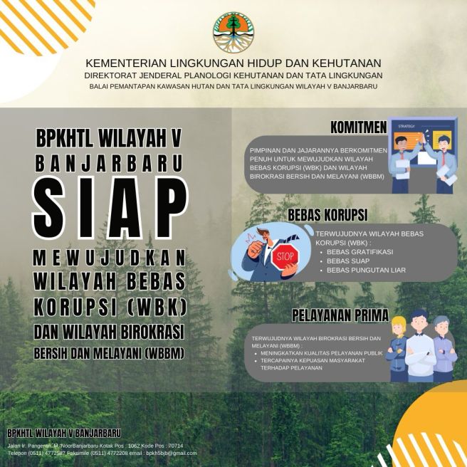 Balai Pemantapan Kawasan Hutan dan Tata Lingkungan Wilayah V Banjarbaru SIAP! mewujudkan Zona Integritas Wilayah Bebas Korupsi (WBK) dan Wilayah Birokrasi Bersih dan Melayani (WBBM).